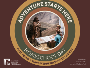 Homeschool students and their families are encouraged to explore the Museum and experience the stories of Idaho on selected Homeschool Days each month from 10am – 3pm. Join us on the first Friday and third Wednesday of each month! Please note: We will not be hosting this program on some dates due to events happening in Julia Davis Park. Learn more and register at Homeschool Days!