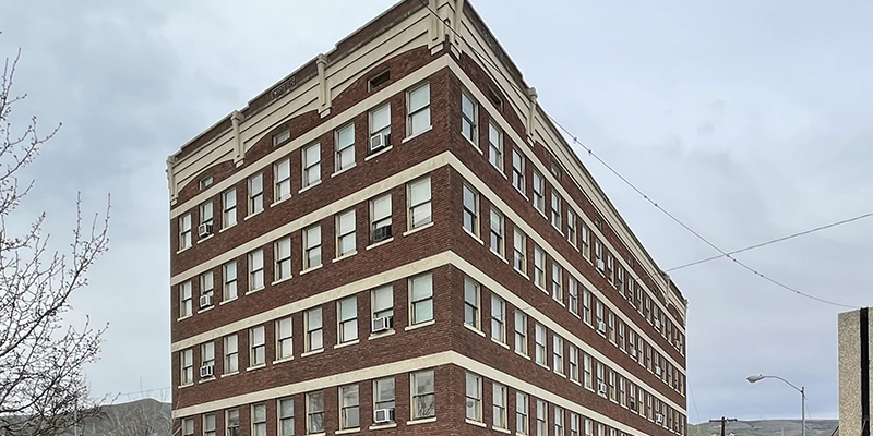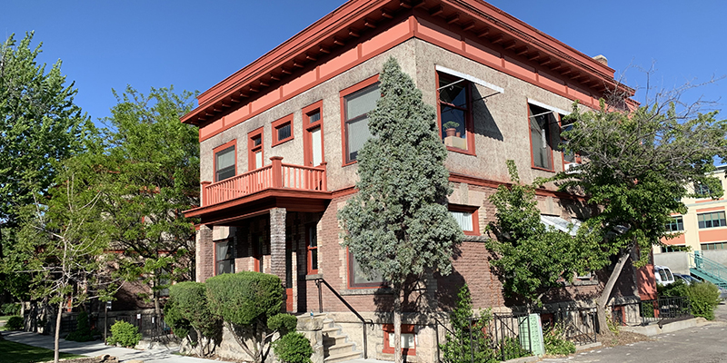 In 1910, A.V. Eichelberger, manager of the Boise Valley Fruit Growers’ Association, commissioned the architectural firm Tourtellotte and Hummel to design an apartment building on Ninth and Franklin Street. The two-story, U-shaped building designed in the Colonial Revival Style offered modern amenities that made it a desirable place to live. Many of the single-story flats boasted a living room, dining room, buffet and bath, “disappearing” (murphy) beds, and large closets. The building was equipped with hot water, and the basement housed a large laundry room and individual storage rooms for each apartment. The sixteen units provided Boiseans with an alternative to the boarding house or hotels of the early twentieth century while still being close to Boise’s fast-growing downtown.