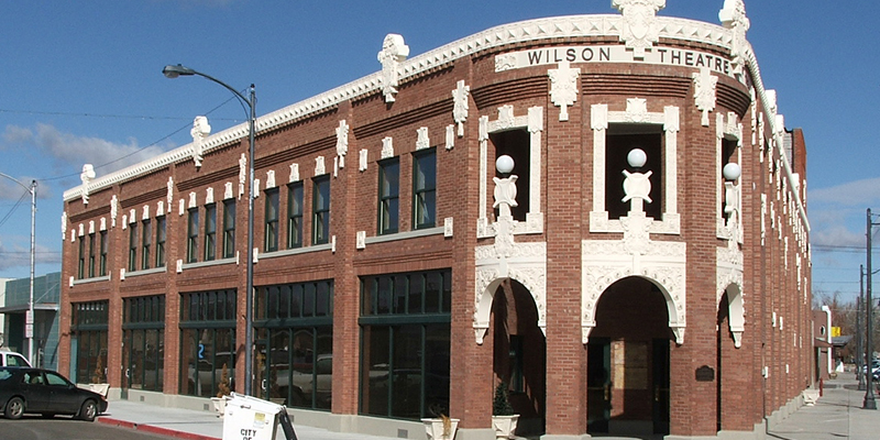 The Wilson Theater was built in 1920 by Daniel Ward Wilson with Robert Paysee as contractor. The theater is of vernacular design but contains a blending of elements of Beaux Arts style and brick commercial block. The theater was purchased in 1999 by the City of Rupert as part of a renovation project to restore the building back to its historic appearance.