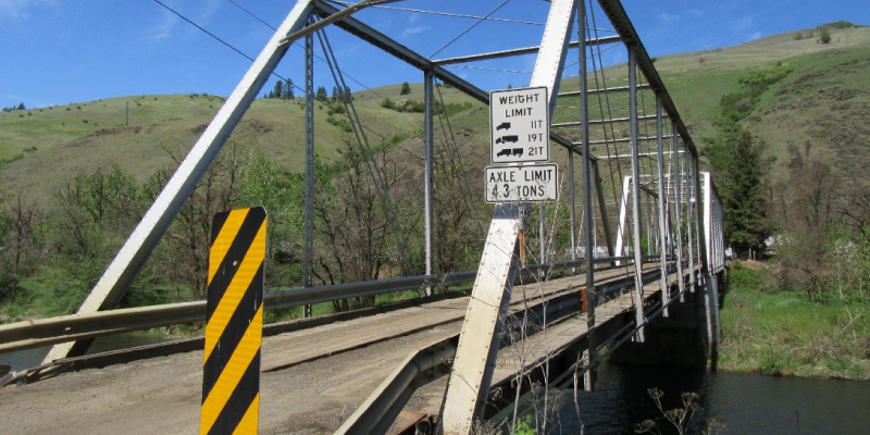 Located at the southern end of Kendrick, the Sperry Bridge spans the Potlatch River between Latah and Nez Perce counties. Completed in 1908, the bridge is significant at the statewide level as the earliest remaining pin-connected vehicular steel truss bridge in northern Idaho. Built by the Columbia Bridge Company of Portland, Oregon, a major contractor in the Pacific Northwest, the Sperry Bridge is notable for its design as an excellent example of a steel, pin-connected Pratt through truss bridge.